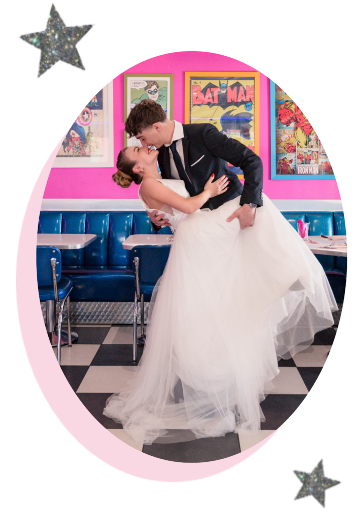 Les premières notes de “Can’t take my eyes off you” de Gloria Gaynor commencent. Votre mari vous prend la main, ça vous rassure. Vous voilà sur la piste, 80 paires d’yeux tournés vers vous mais vous ne les remarquez plus. Vous êtes tous les 2 dans votre bulle, c’est un pur moment de bonheur.